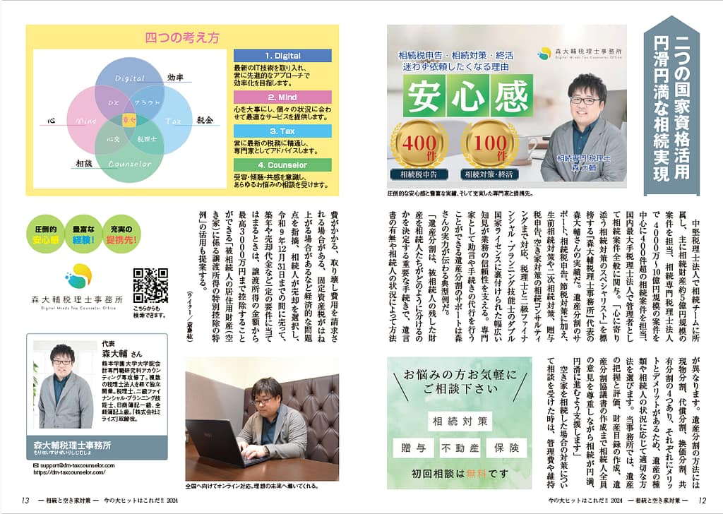 森大輔税理士事務所が相続と空き家対策の専門家として2024年7月5日発売の「2024年度版今の大ヒットはこれだ‼」に掲載されました。